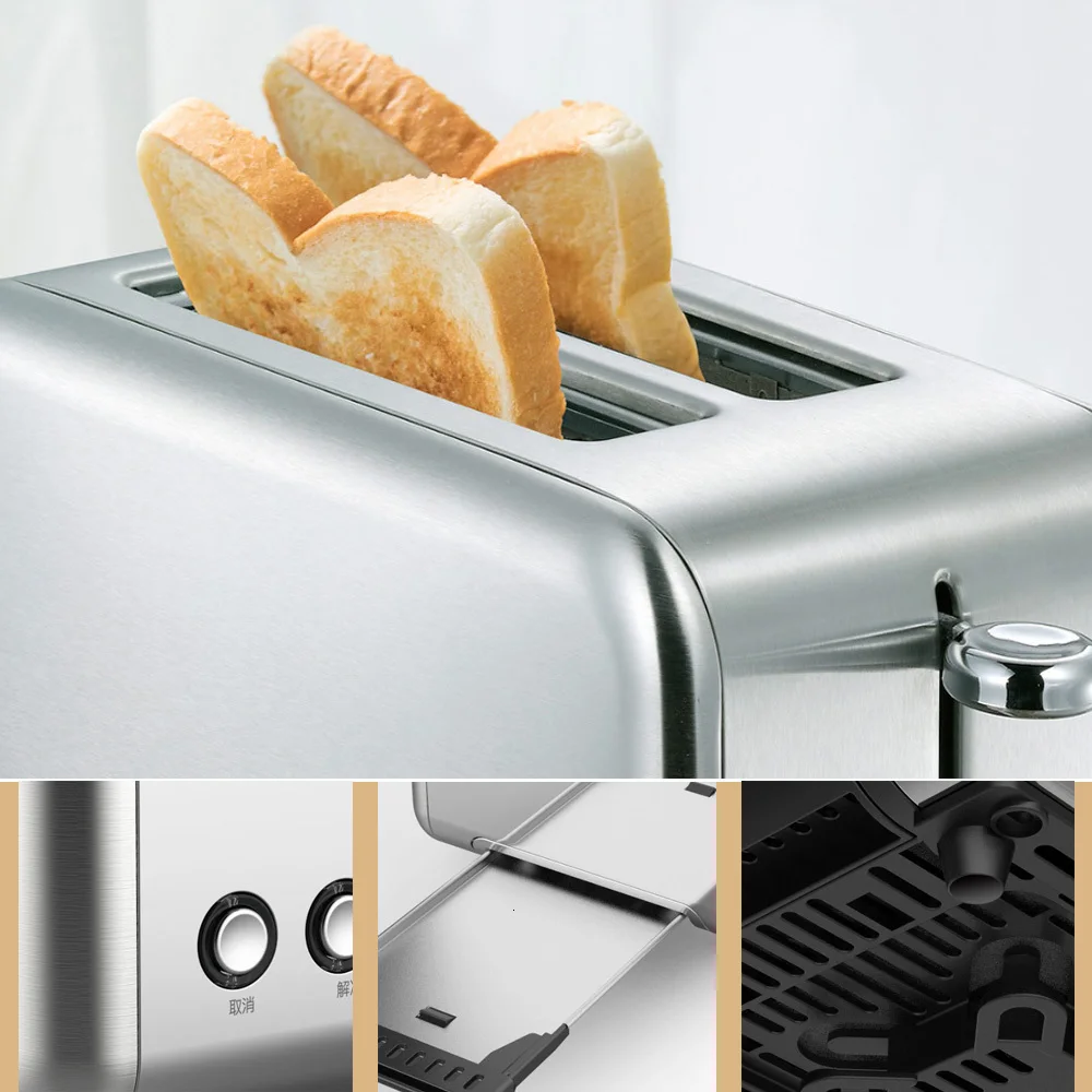 Всего 2 минуты предлагает вам сытный и вкусный завтрак, не требует сложного рабочего процесса, хлебопекарная машина Deerma, изготовленная из нержавеющей стали и материала ABS, действительно удобна и быстро делает или разогревает хлеб и сэндвич.