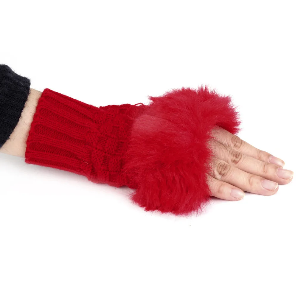 Женские теплые зимние перчатки из искусственного кроличьего меха, варежки без пальцев, удобные перчатки L50/1224