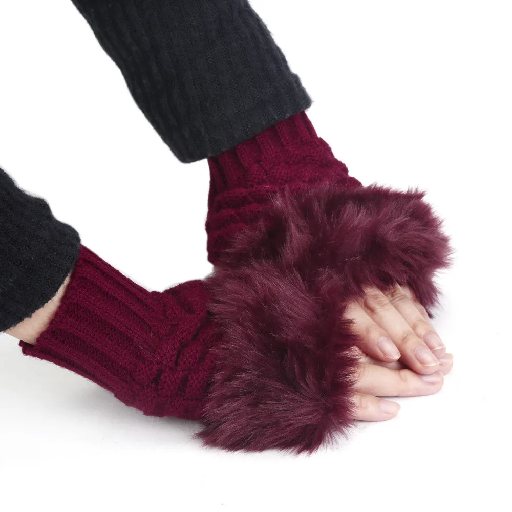 Характеристика: 100% новый товар высокого качества. Цвета: хаки, желтый, темно-серый, кофейный, красный, белый, черный Материал: Вязаная Шерсть + искусственный мех кролика Размер: 14.5cmX9.5 см/5,71 "X3.74" (эластичность) (прибл.) Удобный, мягкий и удобный в носке. Из-за разницы между различными мониторами изображение может не отражать фактический цвет изделия. Спасибо! Количество: 1 пара Посылка: 1 пара Женские теплые зимние перчатки из искусственного кроличьего меха, варежки без пальцев (без розничной коробки. Безопасно упаковывается в пузырчатую сумку)