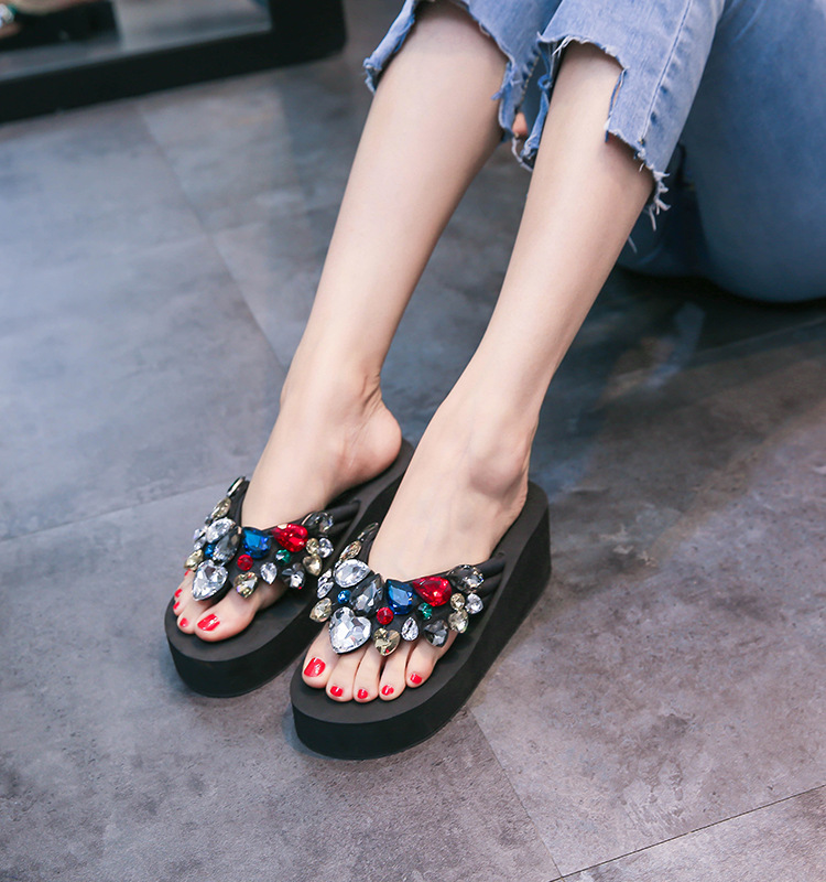 Женские Вьетнамки; Новая модная летняя женская обувь на платформе; Пляжная обувь со стразами; Удобные сандалии; Женские шлепанцы на танкетке; zy822