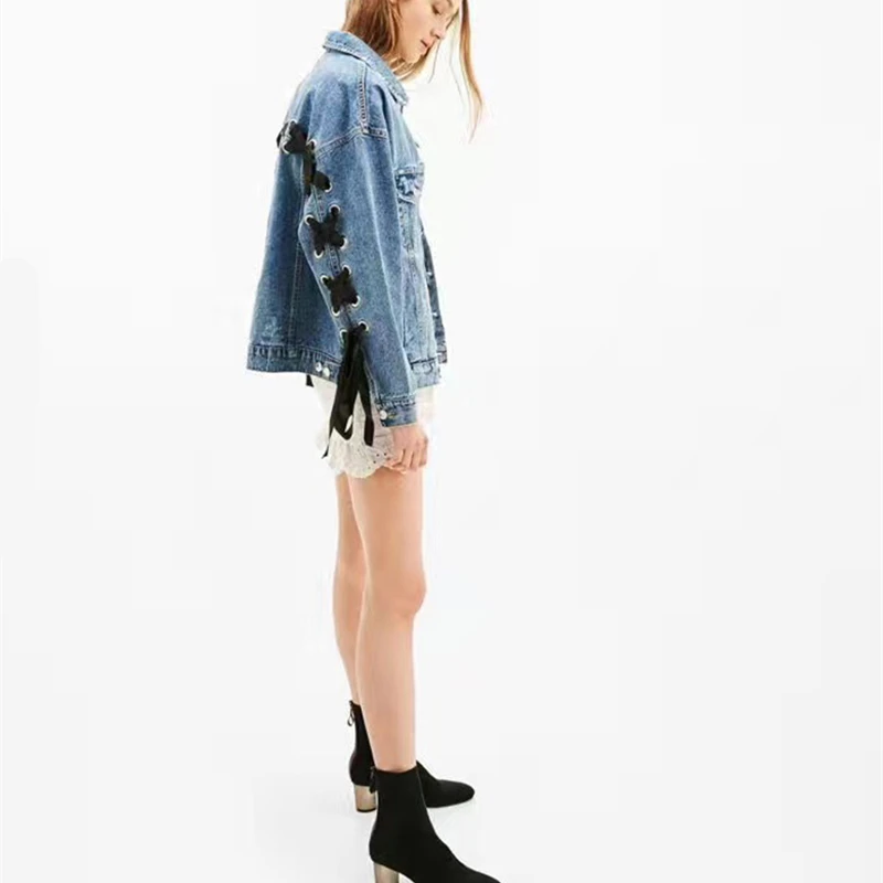 Куртка с отложным воротником джинсовая куртка Свободная Женская Весенняя бомбер