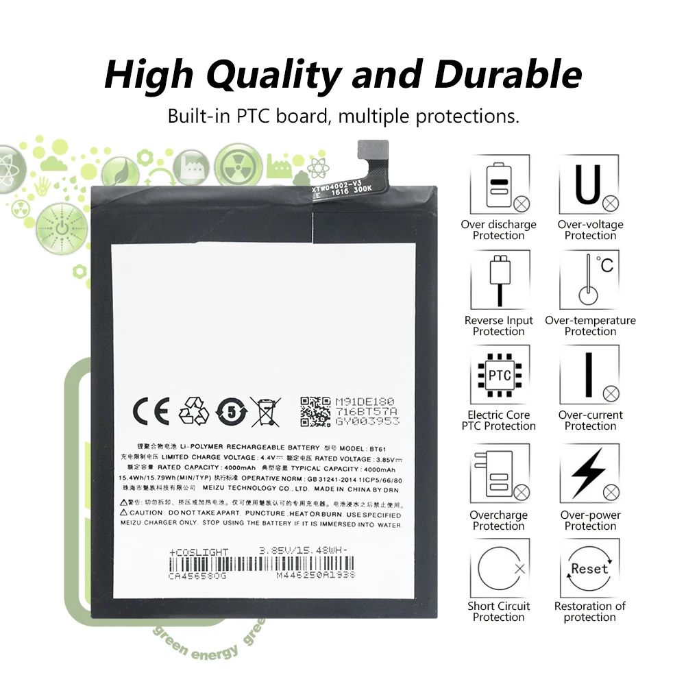 Высокое качество 4000 мАч батарея BT61 для MeiZuM681H