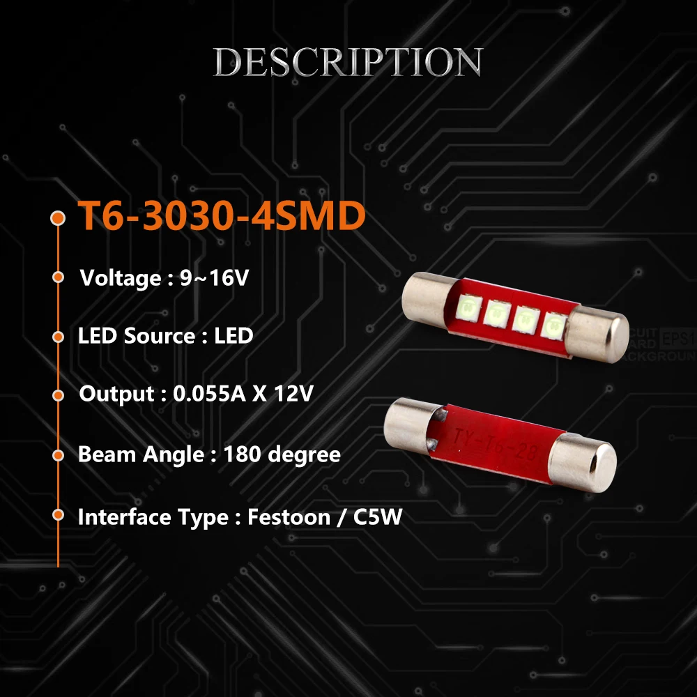 Товар: C5W 3030 4SMD T6 светодиодный светильник для интерьера