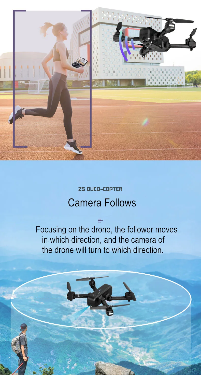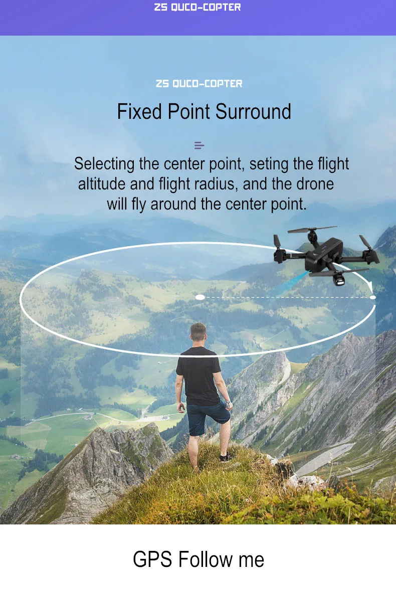 Дрон-это интеллектуальный Радиоуправляемый квадрокоптер, оснащенный усовершенствованной системой GPS. Камера высокой четкости позволяет снимать качественные воздушные кадры. Оснащенный новой функцией «follow me», этот Дрон будет оставаться выше вас автоматически, постоянно держа камеру в центре и захватывая каждый ваш ход. С недавно созданным интеллектуальным аккумулятором вы получите время полета до 14 минут, что даст вам более обширный опыт полета! Расстояние передачи изображения Wi-Fi (свободное взаимодействие и отсутствие окклюзии): расстояние FPV дрона 2,4G составляет 100-150 метров, а расстояние FPV 5G дрона составляет 300-400 метров