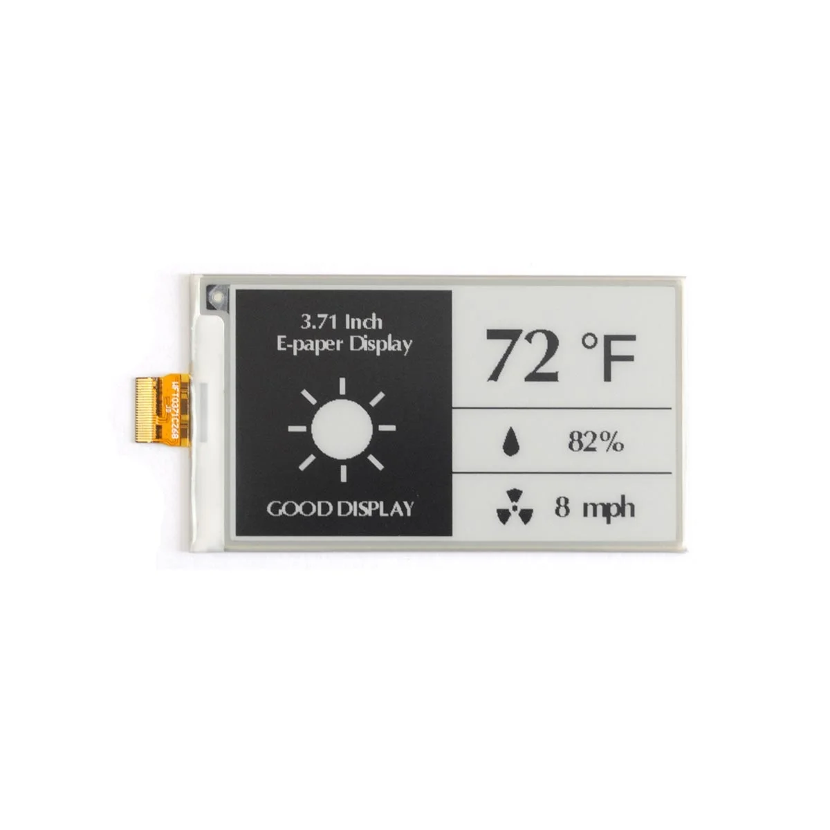 Это Набор разработчика с 3,71 дюймовым дисплеем e-paper e-ink экраном с разрешением 416x240, SPI интерфейсом и дисплеем, способным отображать изображения с черным и белым содержанием. Ваше изображение удерживает неограниченный срок без питания-Установите изображение, а затем выключите питание. Как только эти электронные бумажные модули будут обновлены, они не требуют какого-либо питания и могут быть полностью отключены, и содержимое будет оставаться на дисплее бесконечно. Этот электронный бумажный дисплей GDEW0371W3 идеально подходит для устройств с низким энергопотреблением, работающих на солнечной энергии или батареях.