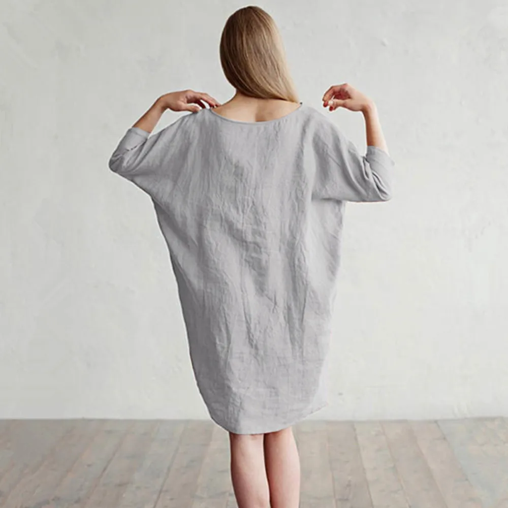 Женское Повседневное платье-туника с рукавами 1/2 из хлопка и льна