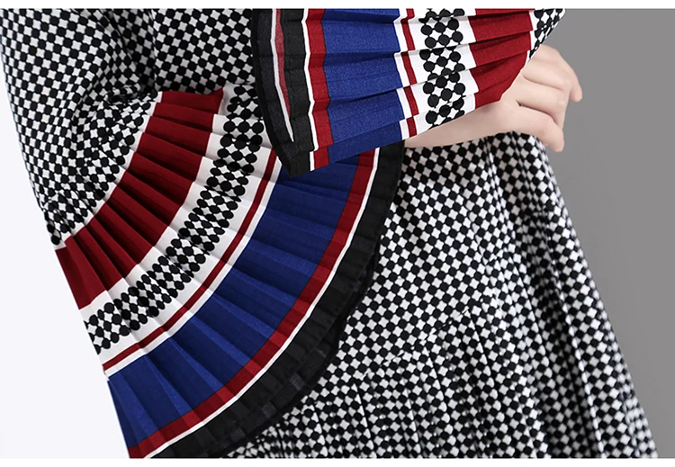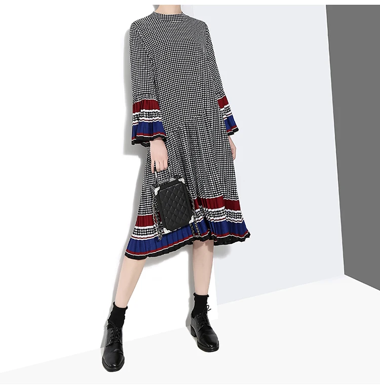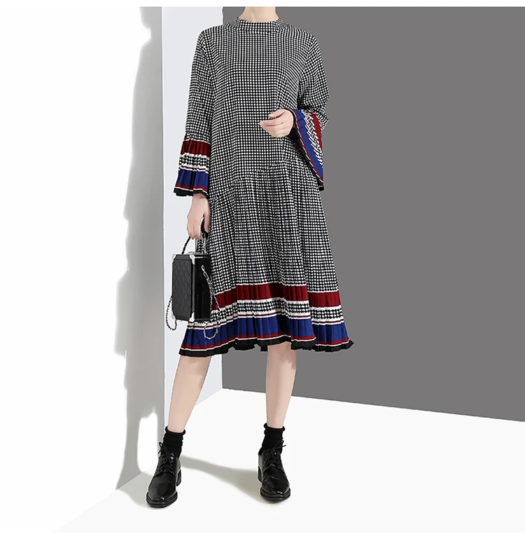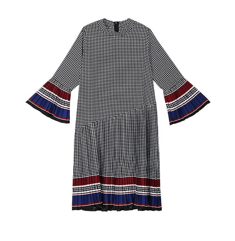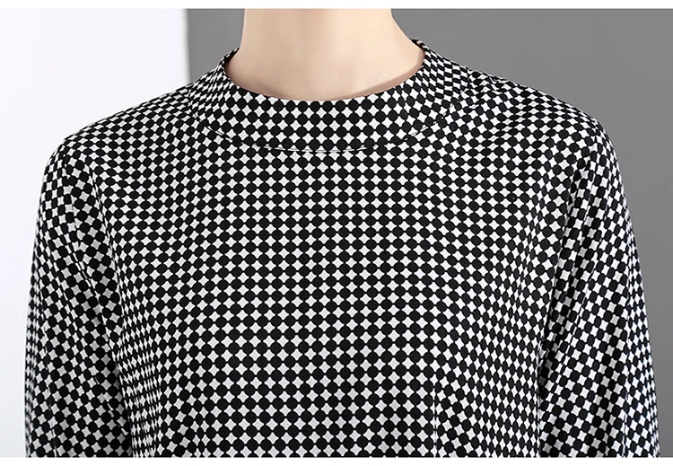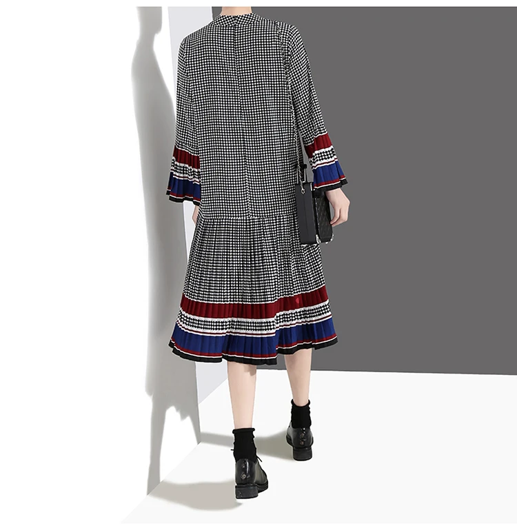 Новинка, женское элегантное черное платье в клетку с длинным рукавом, плиссированное прямое офисное повседневное милое платье средней длины, женский стиль 4629