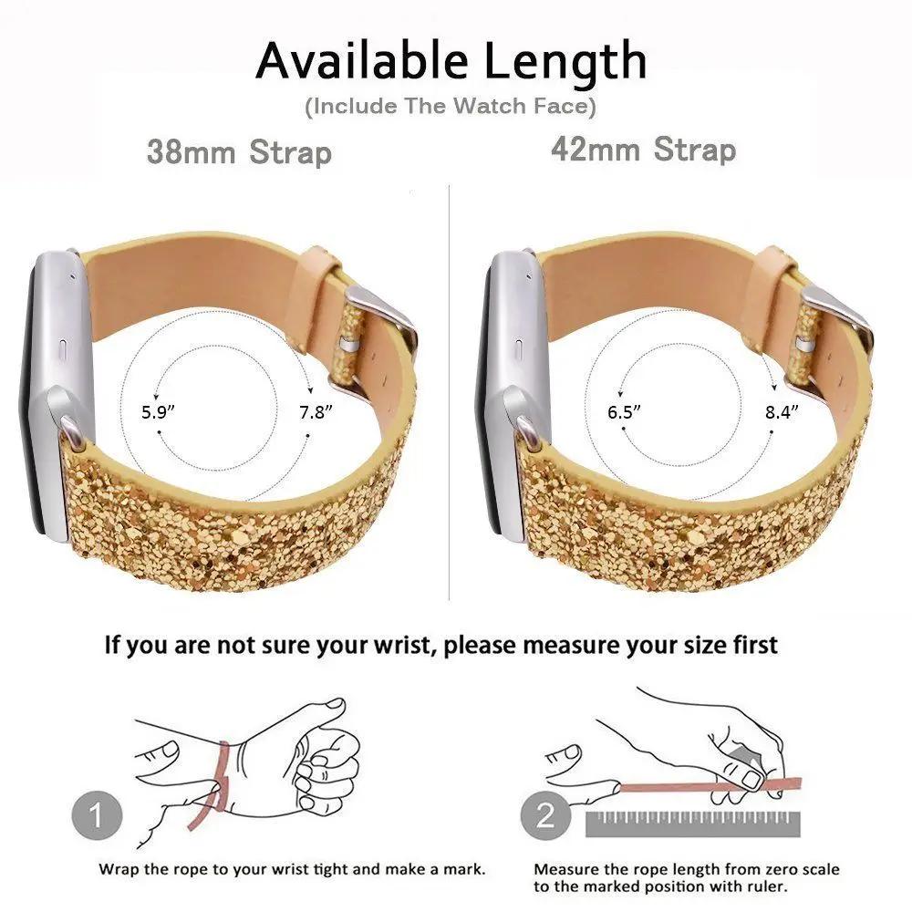Особенности:1. Подходит для всех версий Apple Watch серии 1/2/32. Дизайн по контракту, с вашей жизнью и не просто.3. Цвета: черный, красный, синий, серебристый, золотой, розовый, белый, зеленый4. Материал ремешка: из искусственной кожи5. Размер запястья: 38 мм: 5,5 "-8,2"(140-210 мм)42 мм: 5,9 "-8,6"(150-220 мм) Посылка включает в себя:1x Ремешок для часов с адаптерами (часы не входят в комплект)