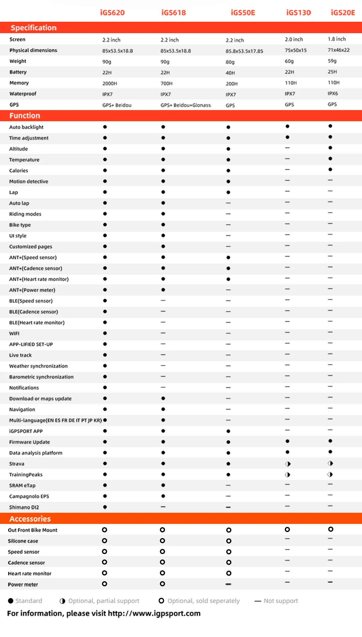 2,3-дюймовый-суперскрученные нематические элементы точечно-матричный экран, обеспечивает более 80 предметов данных на выбор, с переключением между дальним и страница максимальное Отображение данных 8; Точное позиционирование, поддержка GPS + Beidou режим; Большая емкость аккумулятора, срок службы батареи до 45 часов; Протокол передачи Bluetooth и ANT +, поддержка счетчика мощности, более богатый дисплей данных; Навигация по waypoint; Облачная платформа обеспечивает обмен данными на велосипеде и более детальный анализ.