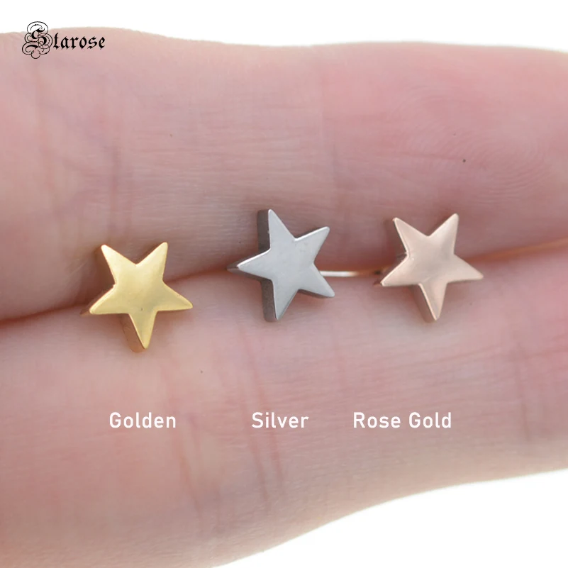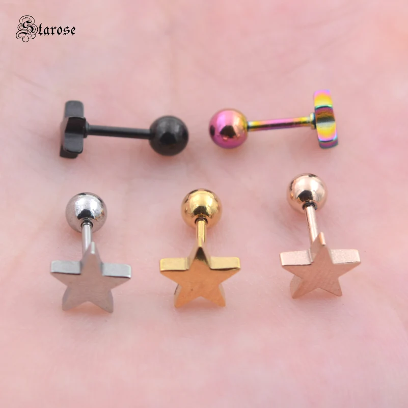 Starose 2 шт. 1,0 х 6 мм 18 гр звезда пирсинг уха, серьги со шпилькой, для женщин, для девочек, козелка пирсинг ореха золото Цвет спирали ювелирные изделия для пирсинга