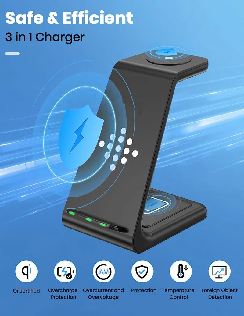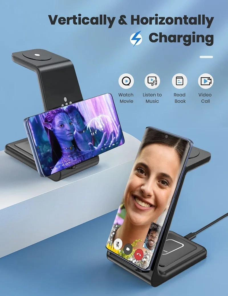 15 Вт Беспроводная зарядная станция для Airpods Pro Galaxy Watch Buds Pro LiveApple Watch Быстрая зарядка подставка для Iphone XS 11 12 Pro Max Samsung S21 S20