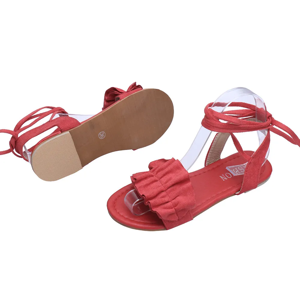 Женские однотонные босоножки на плоской подошве с круглым носком и перекрестной шнуровкой; Обувь в римском стиле