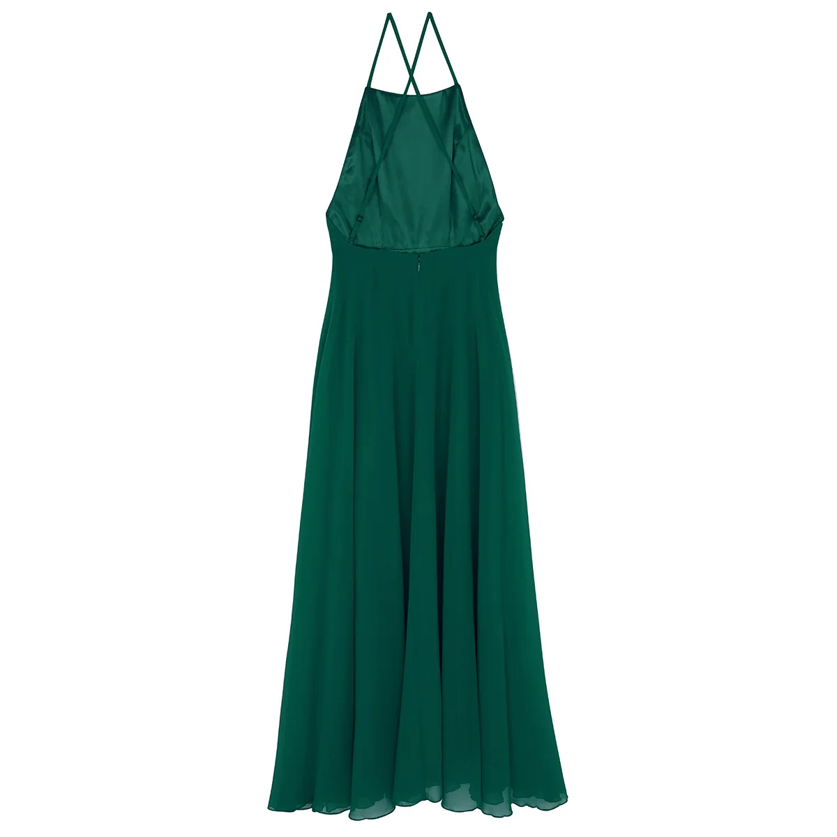 Без рукавов и с открытой спиной, регулируемый ремешок на спагетти крест-накрест сзади, застежка-молния сзади с застежкой.