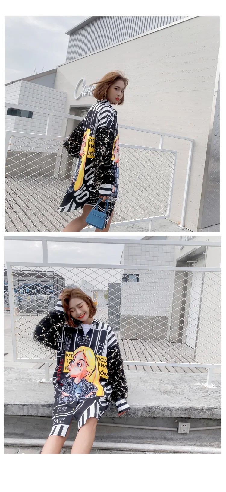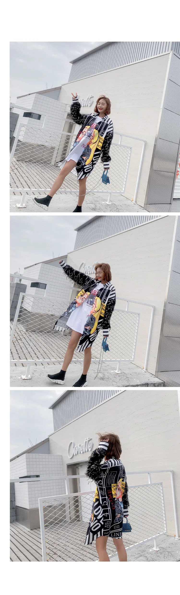 Женская блузка с кисточками Vefadisa, блузка с рукавами с блестками и принтом из мультфильма, длинная Асимметричная блузка, однобортные Топы в стиле Харадзюку, ZLD653