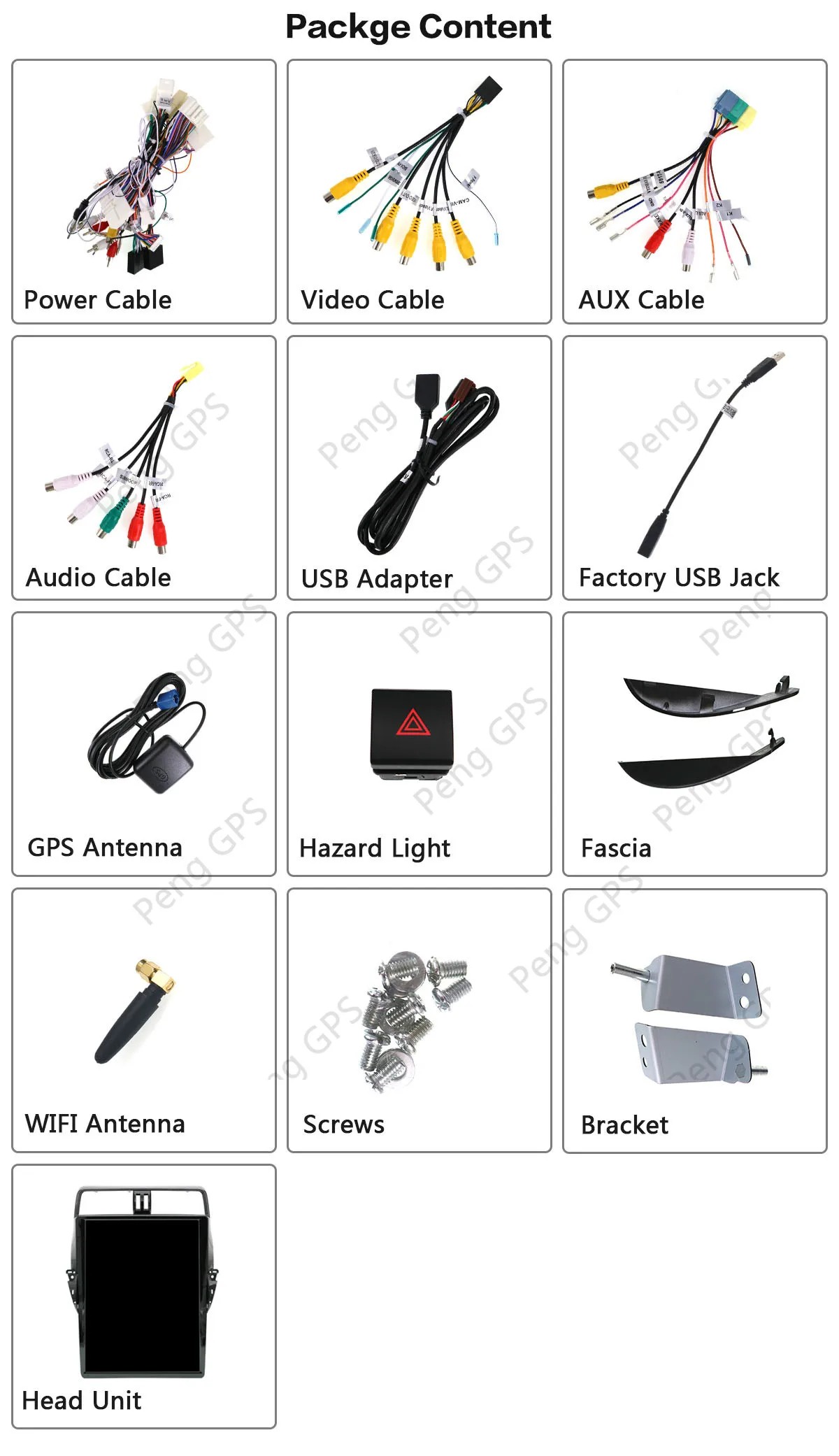 Наш продукт поставляется с GPS антенной, gps-картой для вашей страны, usb-адаптером, аудио и видео входным кабелем, кабелем питания... и т. д., все наборы для установки будут в посылка.
