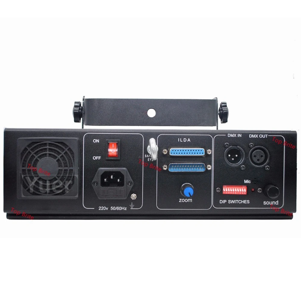 Мощность: зеленый 150 МВт (532 нм) красный 500 МВт (650нм) синий 400 МВт (450нм) Режим воспроизведения: Авто/звуковая активация/DMX512/ILDA Система управления: Высокоскоростной модуль сканера, угол сканирования ± 20 °; Входной сигнал: ± 5 В, искажение линейности <2%. Эффект: различные лазерные лучи, сложная графика, анимационное шоу и эффект потускнения, до 128 видов узоров внутри. Программирование: разложить различные балки и анимационные программы. Интерфейс управления: DMX512/ (12 каналов) и стандартный интерфейс ILDA Мощность AC 110/220V 50/60HZ Потребляемая мощность: 50 Вт Место происхождения: Китай Сертификат: CE & RoHS Размер: 315x265x150 (мм) Вес: 3,5 кг