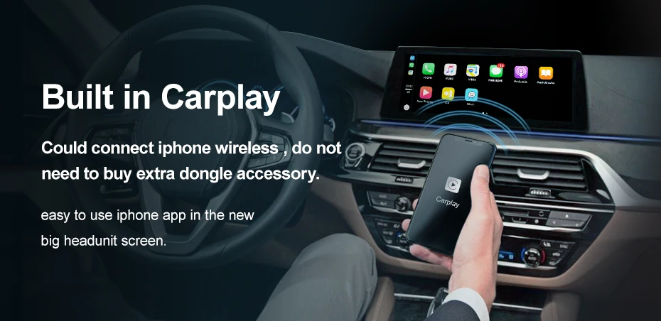 >>> встроенный в carplay Можно подключить беспроводное устройство iphone, не нужно приобретать дополнительный аксессуар Carplay Dongle. Легко использовать приложение iphone на новом большом экране головного устройства. Пожалуйста, выберите встроенную опцию Carplay на заказ.