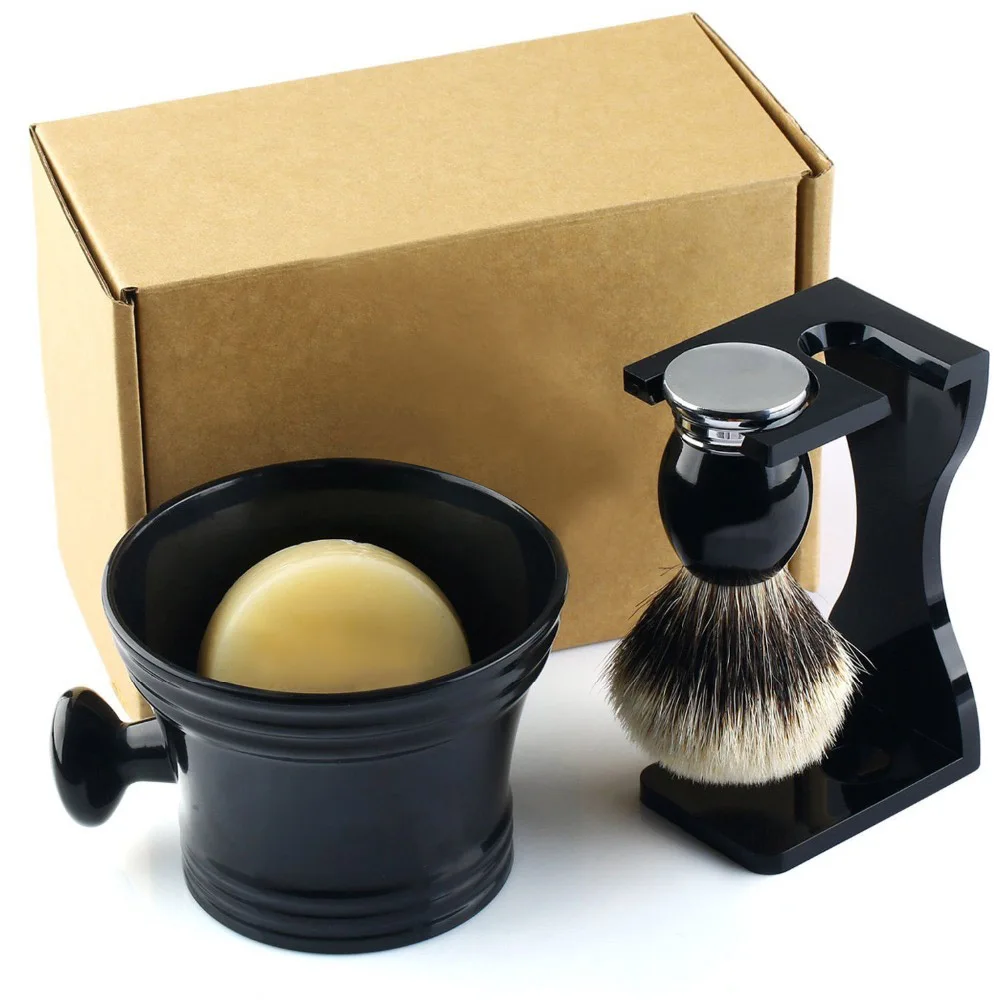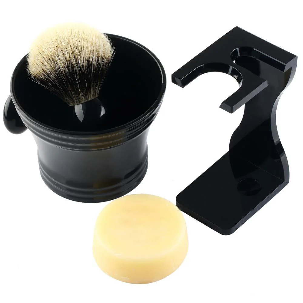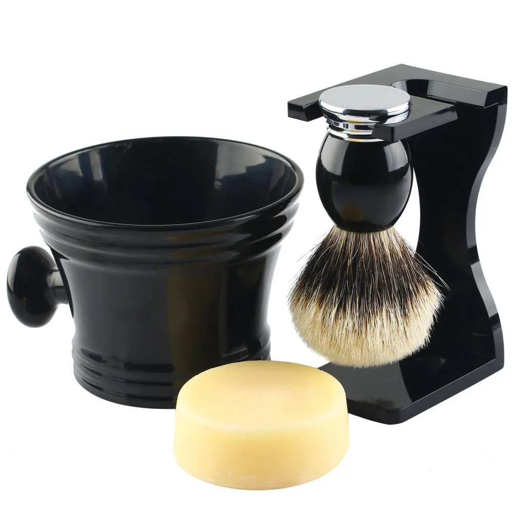 4в1 Набор для бритья барсук серебряный наконечник щетка для волос мыло Смола акриловая чашка держатель набор