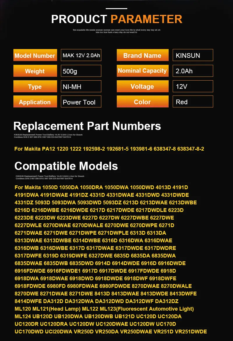 Каждый аккумулятор имеет номер модели (или номер детали, P/N), вы можете найти их на вашей оригинальной этикетке аккумулятора. Перед размещением заказа, пожалуйста, убедитесь, что название бренда, Модель аккумулятора, номер детали, форма аккумулятора соответствуют вашему ЭЛЕКТРОИНСТРУМЕНТУ или аккумуляторной дрели. Если вы не уверены, пожалуйста, свяжитесь с нами для дальнейшего подтверждения. Спасибо!