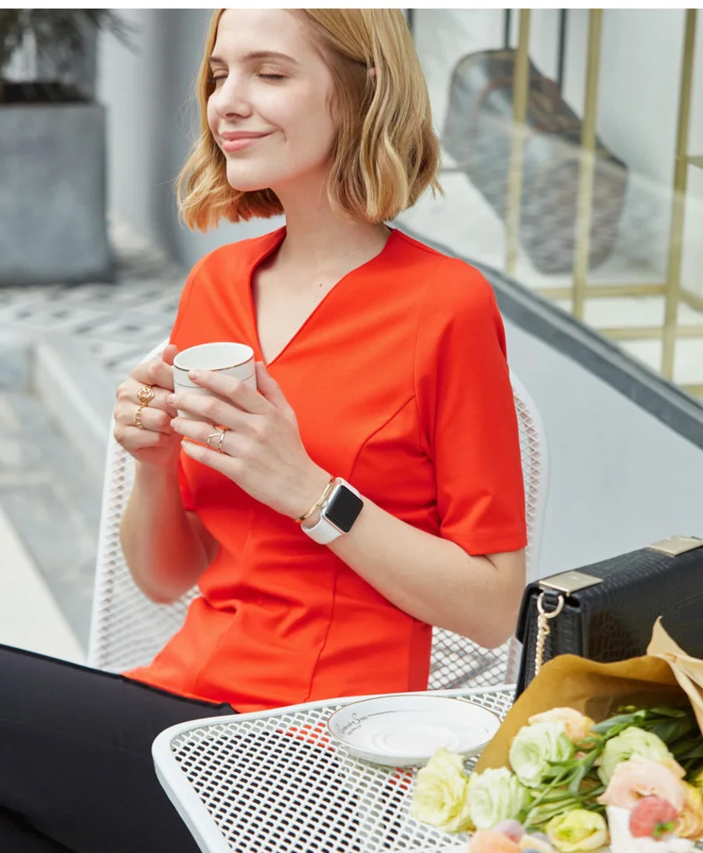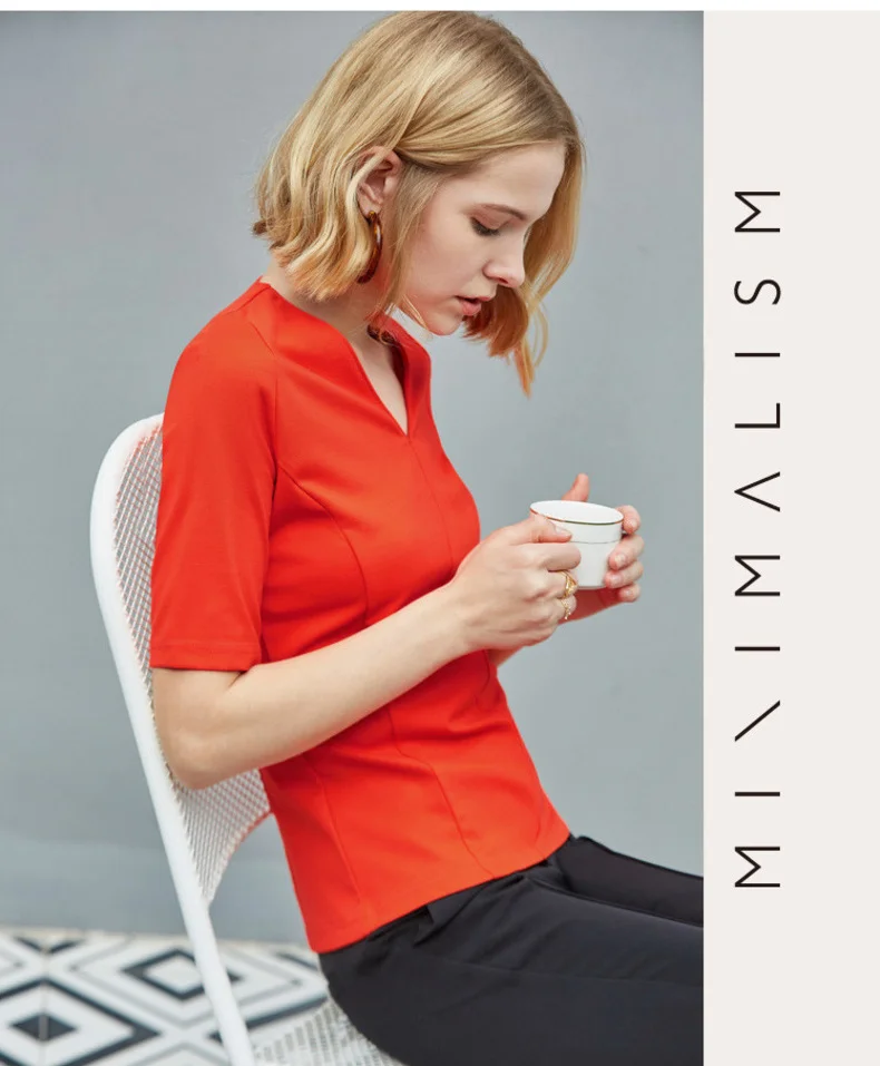 Однотонная футболка с полувысоким воротником модель 2019 года Женская Базовая