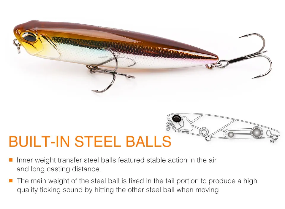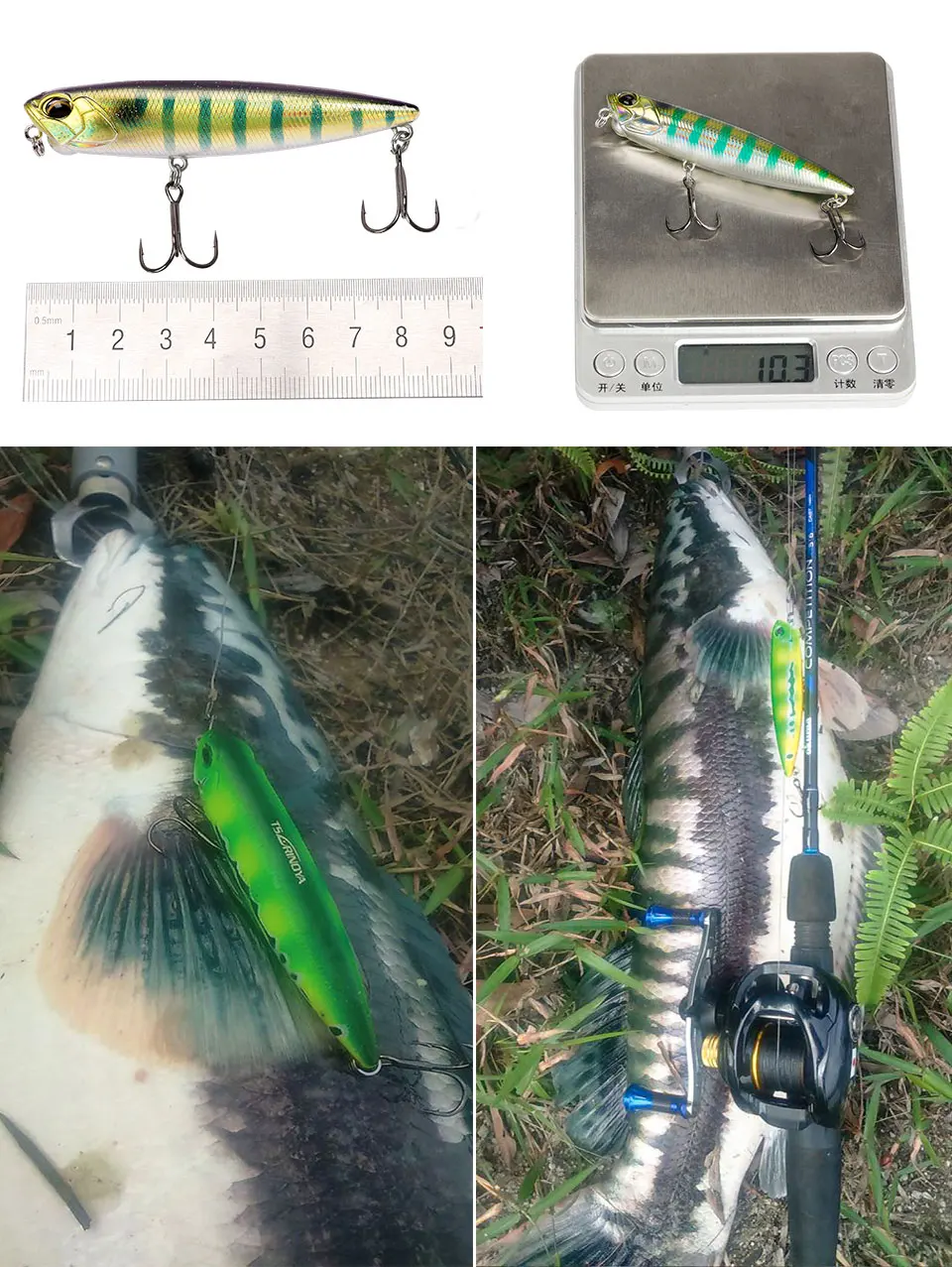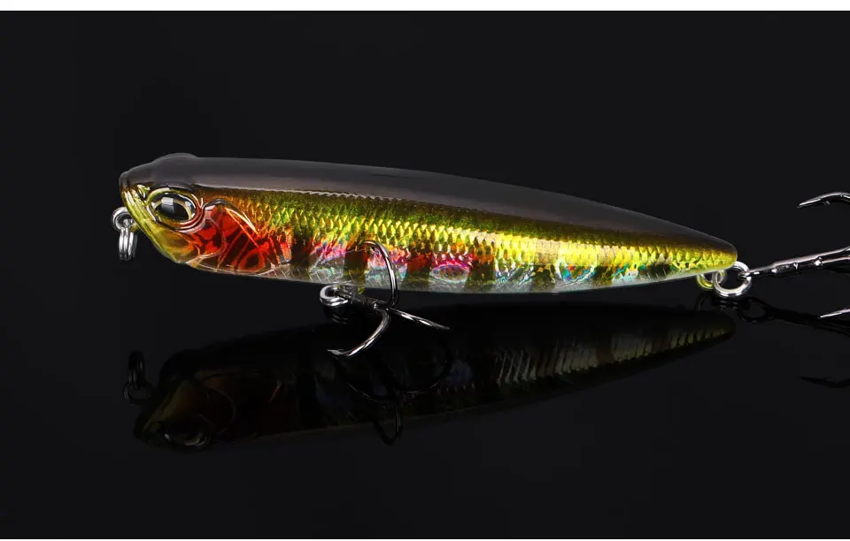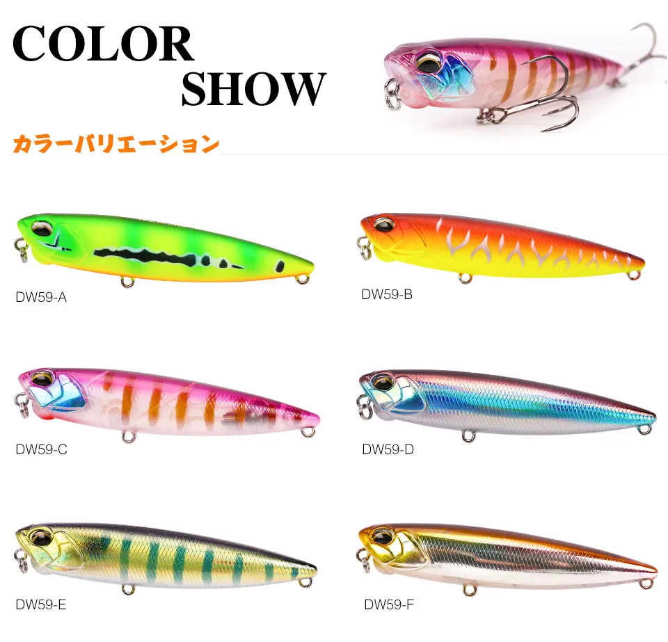 Особенности: DW59 является верхней приманкой-карандашом для воды. Сильное тело, рыбная чешуя с лазерным эффектом может отражать внешний свет со всех сторон, благодаря чудесному искушению. Внутренний стальной шар переключения веса обеспечивает стабильное действие в воздушном и дальнем литье. Основной вес жесткого мяча, закрепленный на хвостовой части, издает высококачественный тикающий звук, ударяя по движущейся массе жесткого мяча. Усиленный двойной круг, повышенная устойчивость к вытягиванию, это гарантирует зацепление большой рыбы. Естественный вид 3D глаза и высокая отражающая голограмматическая отделка для привлечения даже умного хищника Подробная информация о продукте: 6 цветов: A,B,C,D,E,F,G,H Вес: 10,5 г Длина: 85 мм : Материал подошвы: полиуретан толщина Topwater Содержание упаковки: купальное полотенце, 1 шт.