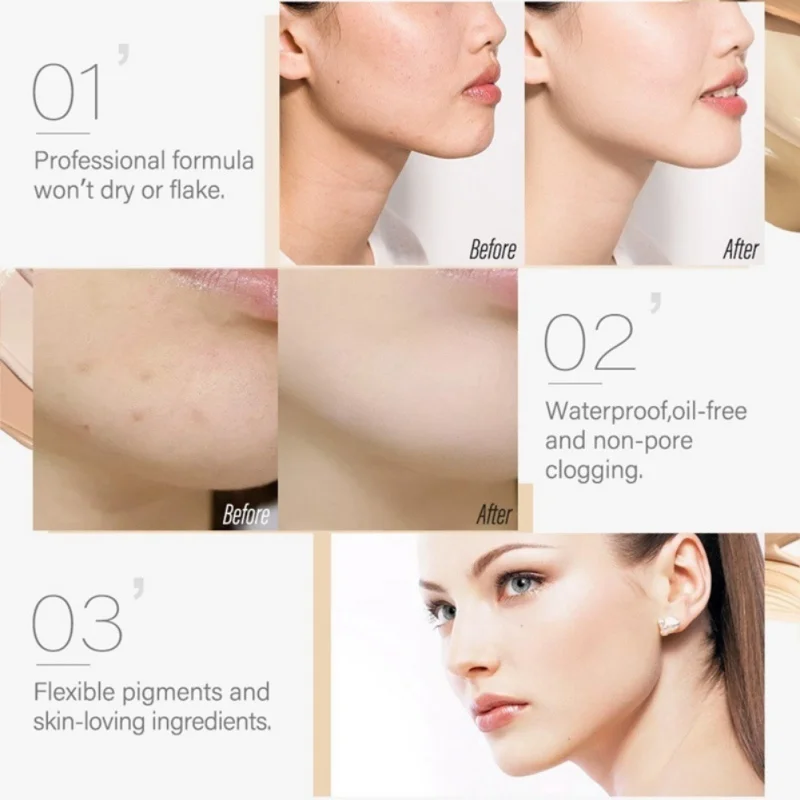 2. Покрытие темных кругов, акне, пока, пятен и других пятен для лица, оставляет кожу яркой и гладкой.