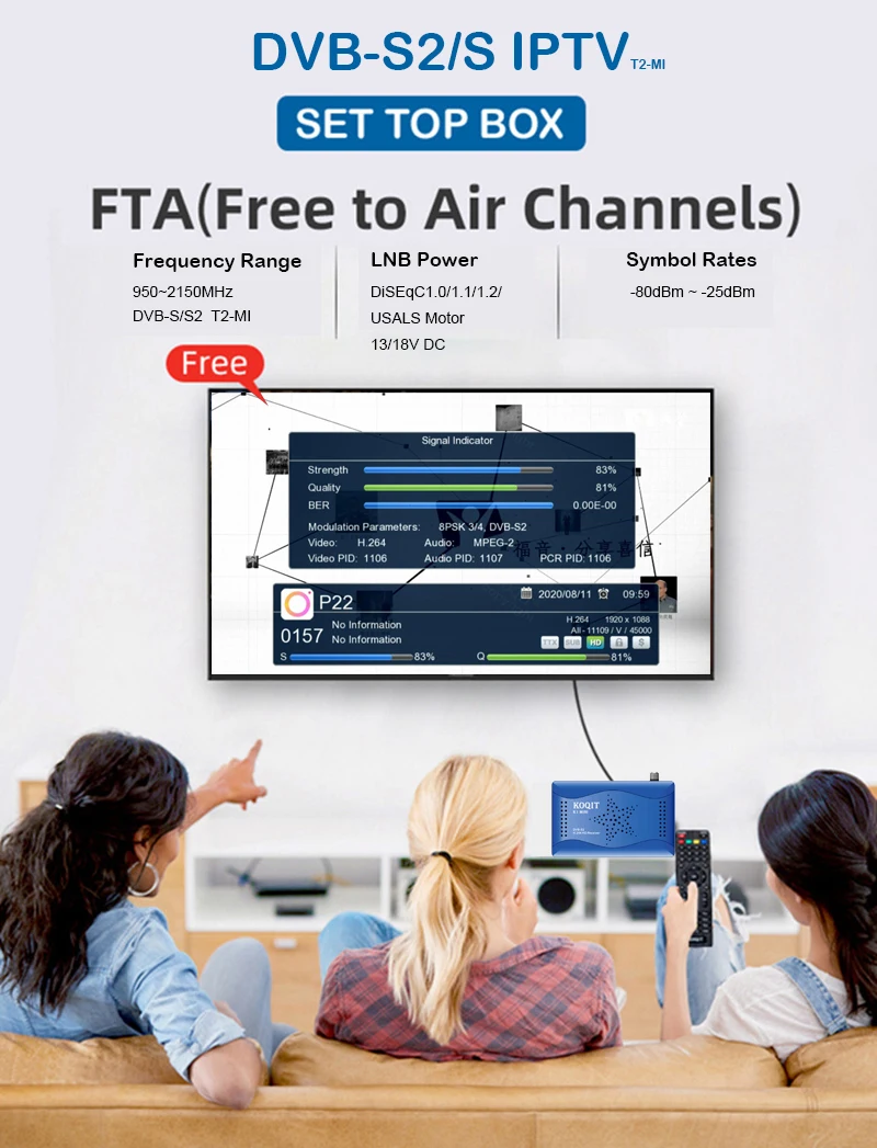 Ключевая особенность ★ Этот цифровой мини-телевизор Koqit DVB-S2 с функцией IKS и SKS. ★ Мини-размер с двойным портом USB, один для USB Wi-Fi, а другой для воспроизведения записи USB PVR. ★ Он может работать по всему миру Бесплатный спутниковый HD / SD Clear Channel с Dolby AC3 Audio. ★ Поддержка интернет-IKS, Cccam Newcam ... (без учетной записи) ★ И SKS Key Декодированный ключ Biss и Power VU Code Setting ★ USB Wi-Fi ключ требует Ralink7601 ★ Поддержка онлайн Youtube видео приложение. ★ Полностью соответствует стандарту DVB-S / S2, MPEG-2/4 H.264 ★ Поддержка одиночного, множественного или слепого спутникового телевидения, PAL / NTSC. ★ Поддерживает протокол двигателя DiSEqC 1.0 / 1.1 / 1.2 / 1.3 (USALS) ★ Мощная и очень эффективная 7-дневная функция EPG. ★ USB 2.0 для записи каналов PVR, TimeShift, обновления программного обеспечения, воспроизведения медиа-файлов и воспроизведения мультимедиа Список пакетов: (USB Wifi Dongle был необязательным) 1 * Мини Размер DVB-S2 Приемник. 1 * Пульт дистанционного управления (не включая батарею) 1 * HDMI-кабель (длина 50 см) 1 * RCA кабель 1 * адаптер питания 1 * светодиодный удлинитель ИК-кабель