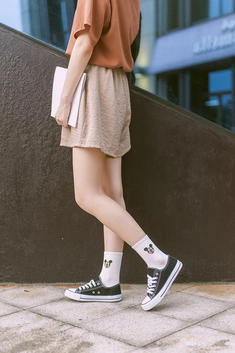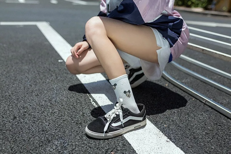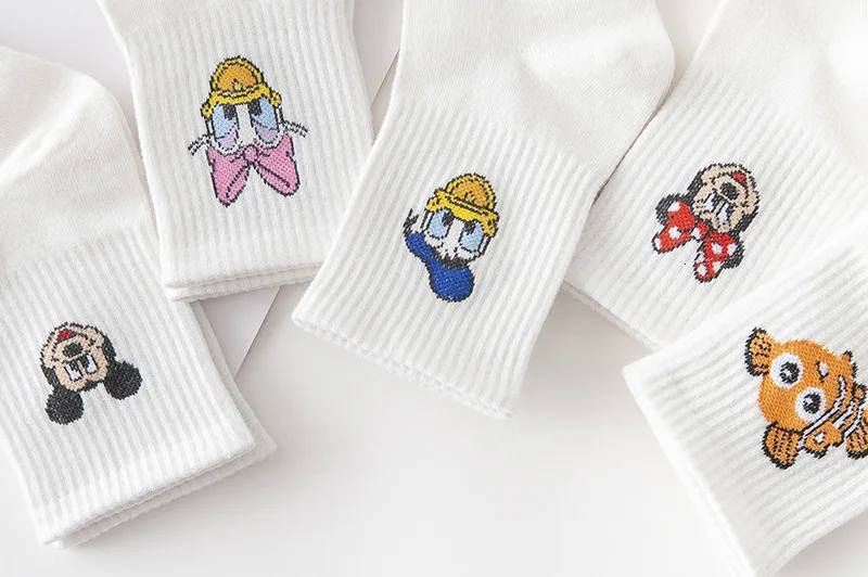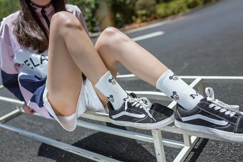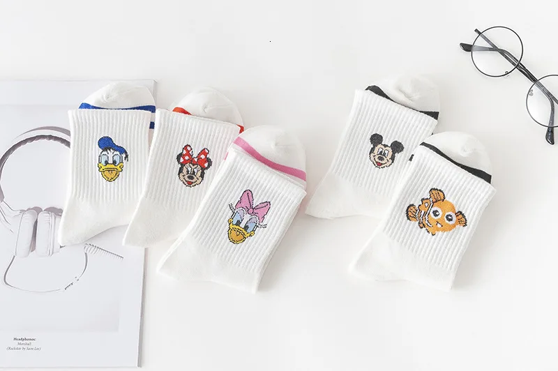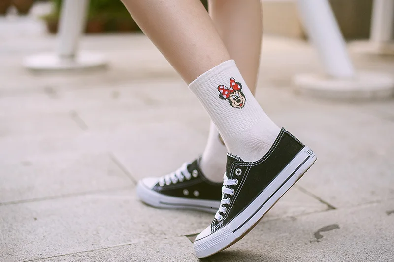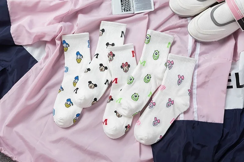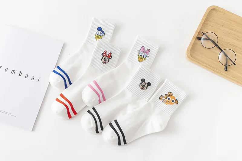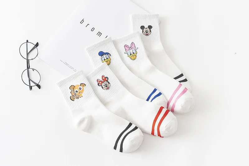 Фабричные женские носки в стиле Харадзюку С героями мультфильмов; милые женские повседневные носки с Микки Маусом; хлопковые носки в белую полоску
