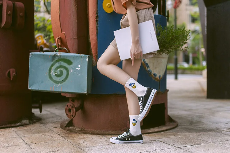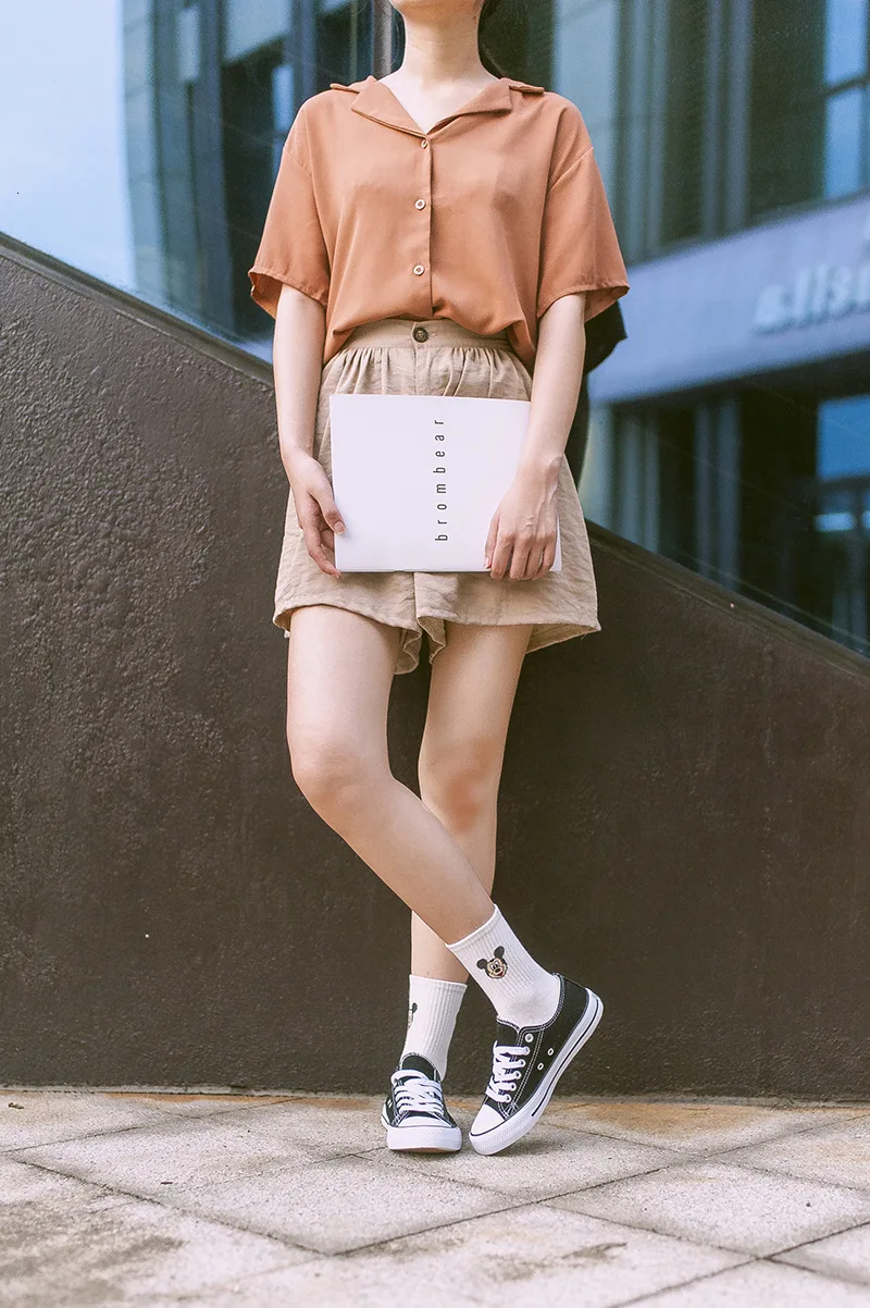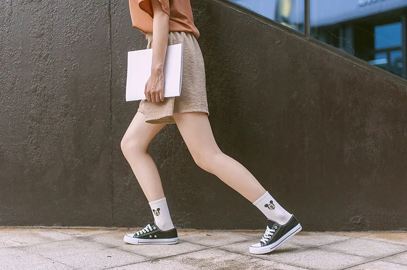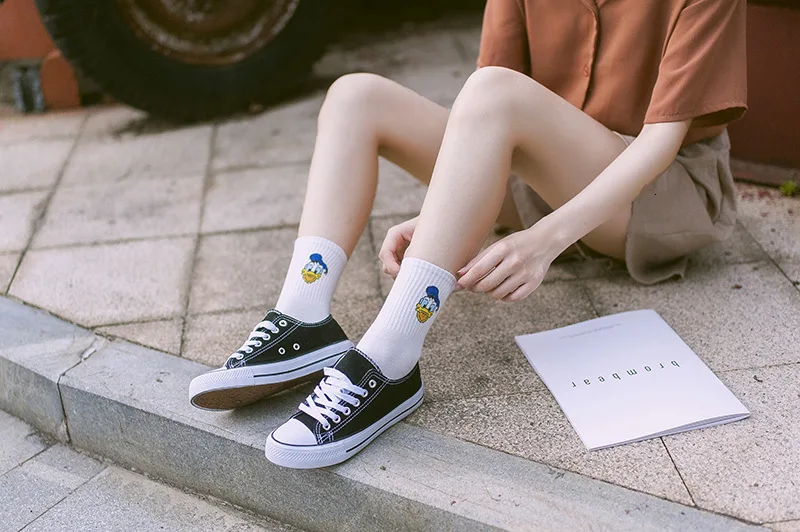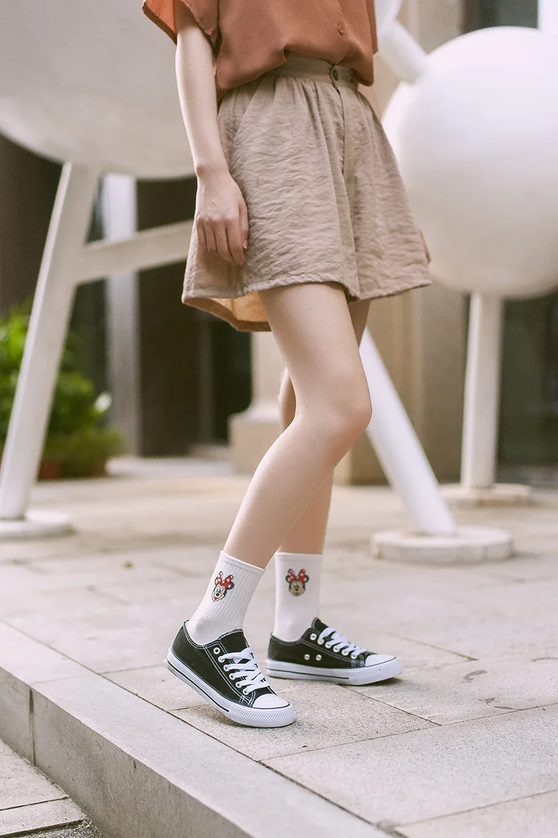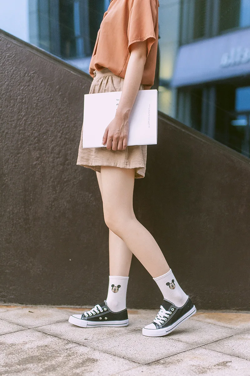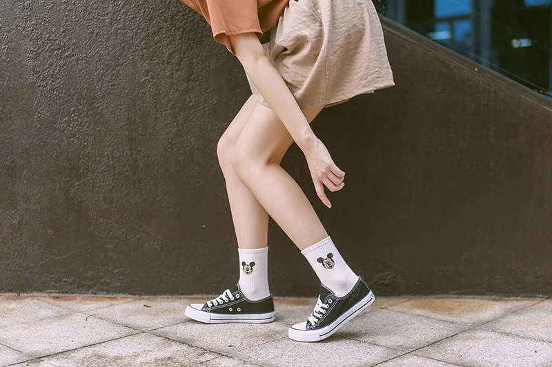 Фабричные женские носки в стиле Харадзюку С героями мультфильмов; милые женские повседневные носки с Микки Маусом; хлопковые носки в белую полоску