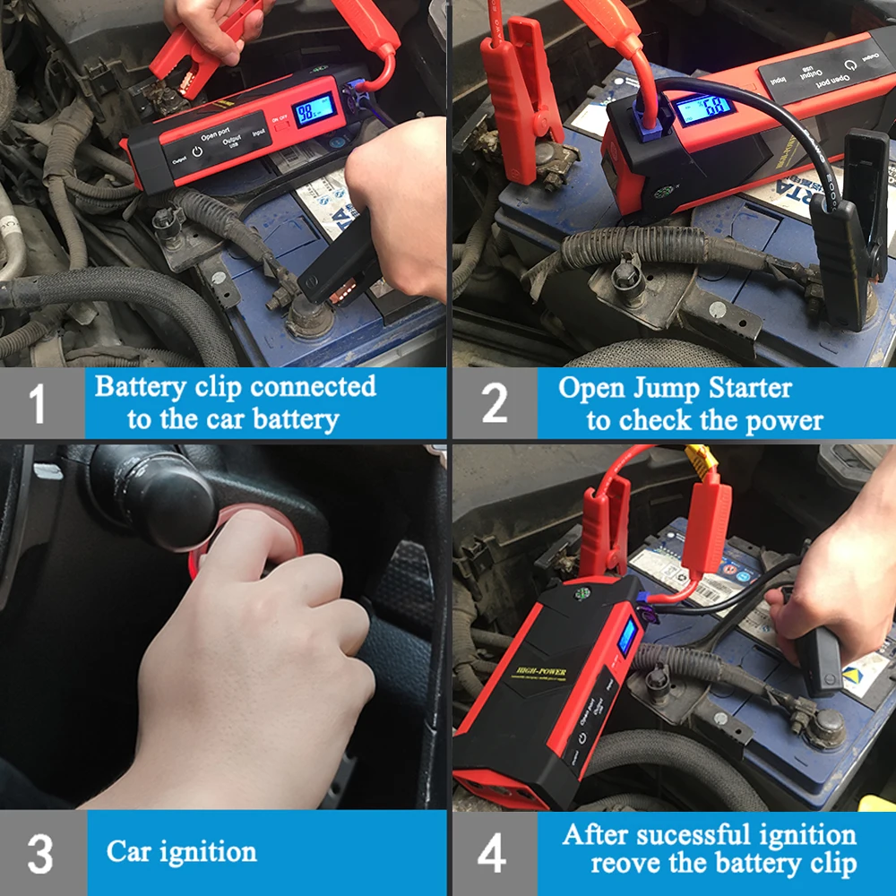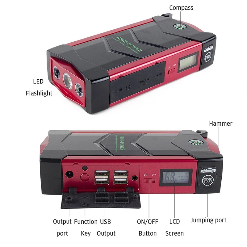 Реальная емкость аккумулятора 20000 мАч, запуск бензиновых автомобилей 7,0 л или ниже, запуск дизельных автомобилей 4,0 л или ниже С монитором заряда батареи, более модный и удобный С выключателем питания, может блокировать питание в течение 3-6 месяцев С пластиковой коробкой, легче для хранения Обязательная и надежная необходимость в дальнем путешествии Защита от перезарядки, защита от перегрузки по току, защита от перенапряжения, защита от перегрузки по току