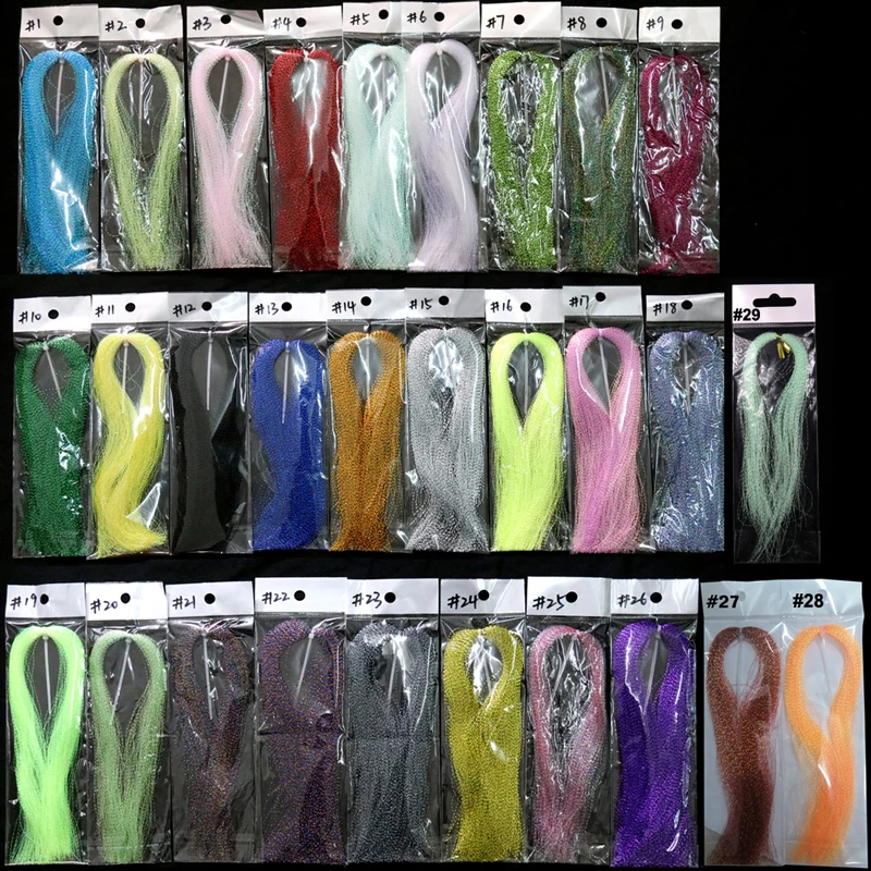 Витой flashabou пряди упакованы в мешок Размер около 28 см ~ 30 см длина (складывается в мешок) Цвет: до 29 цветов на выбор 4 упак./лот Применение: для завязывания мушек, помощи в завязывании крючков, приманки, джига, украшения крючков, завязывания мушек sabiki и т. д. Примечание: пожалуйста, поймите, что некоторые цвета очень похожи друг на друга, и на дисплее есть изменение цвета. Таким образом, цвет может немного отличаться, как вы видите на экране и в реальности.