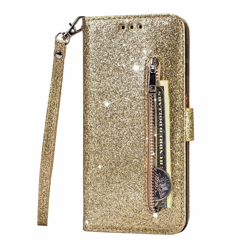 [Размер]: блестящий чехол-кошелек на молнии для телефона