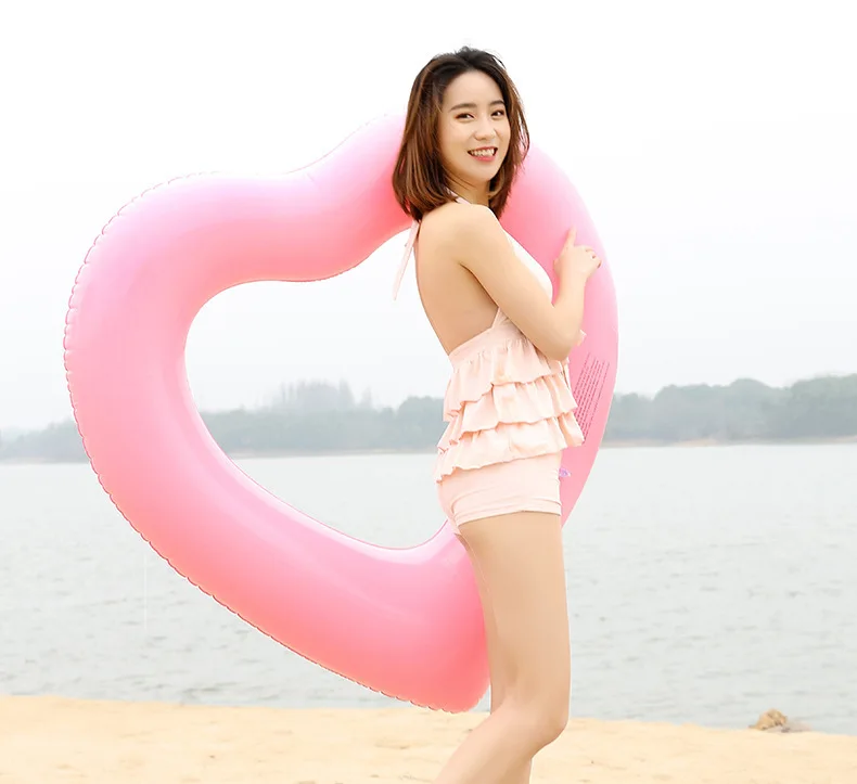Надувное кольцо для плавания с розовым блестящим сердцем девочек Серебряное