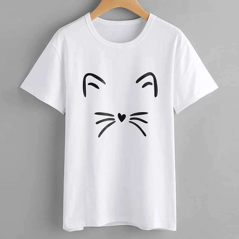 Забавные футболки футболка с рисунком кота из мультфильма Kawaii одежда круглым