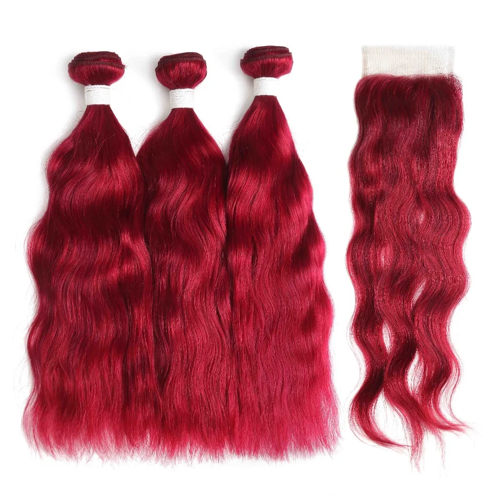 99J/бордовый, красный цвет, бразильские натуральные волнистые человеческие волосы, пучки с закрытием, 4x4, не Реми, волосы 3 шт., человеческие волосы, пряди, KEMY Hair