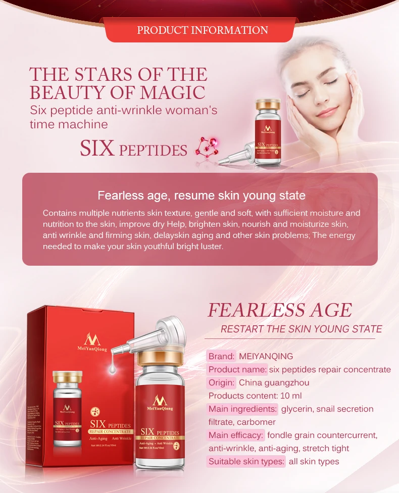 Содержит несколько кожных питательных композиций с пептидом, качество материала мягкое и мягкое, обеспечивает достаточную влагу и питание для кожи, улучшая сухость без воды, помогает коже анти-старения против морщин, питает и увлажняет, борется с тонкими линиями, подтягивает: укрепляет кожу, задерживает старение, мягкая кожа, Против морщин и т. Д., восполняет энергию кожи, пусть ваша кожа молодой блеск.