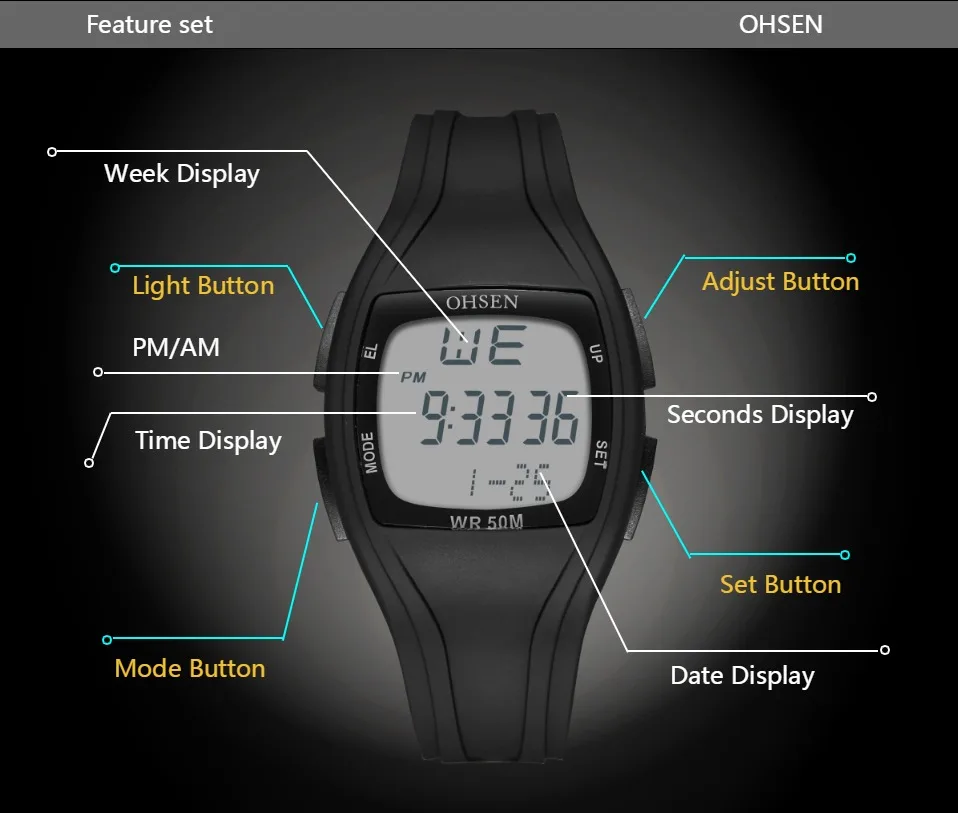 Дополнительная функция ЖК-подсветки для четкого отображения времени в темноте