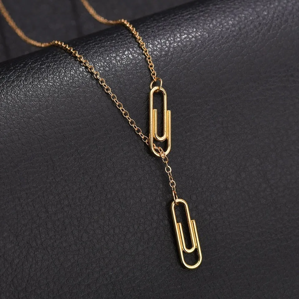 Трендовое женское ожерелье с кулонами, двойной бумажный зажим, романтическое свадебное украшение в европейском стиле для женщин, золотой цвет, 2019