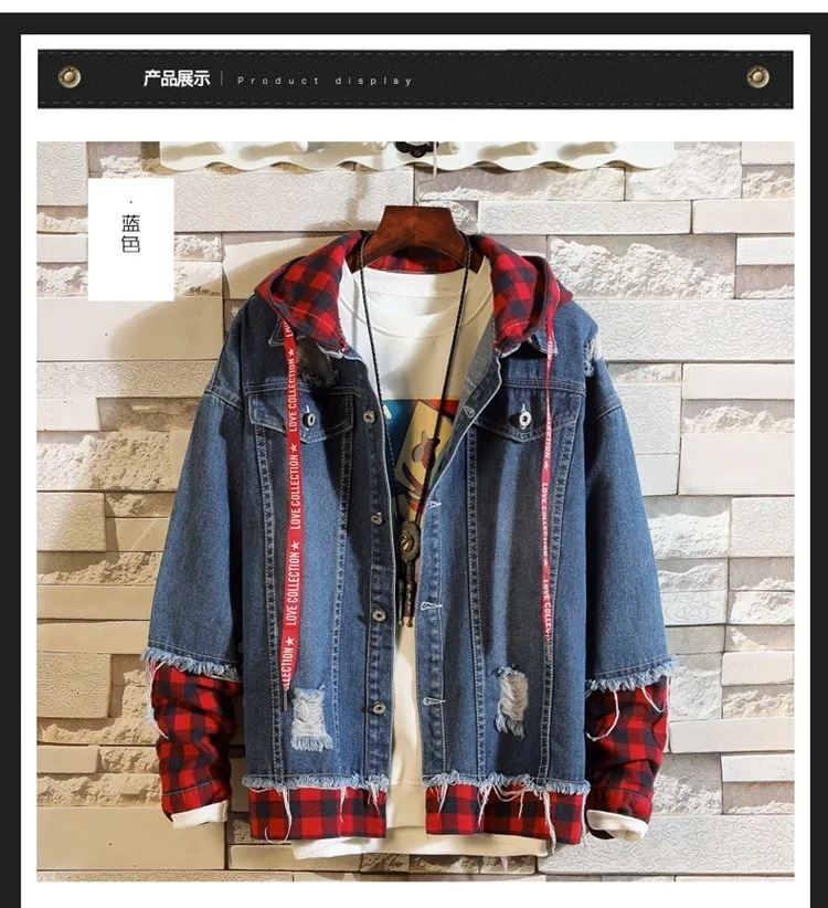 Мужская Черная синяя джинсовая куртка Стандартный крой уличная одежда ветровка