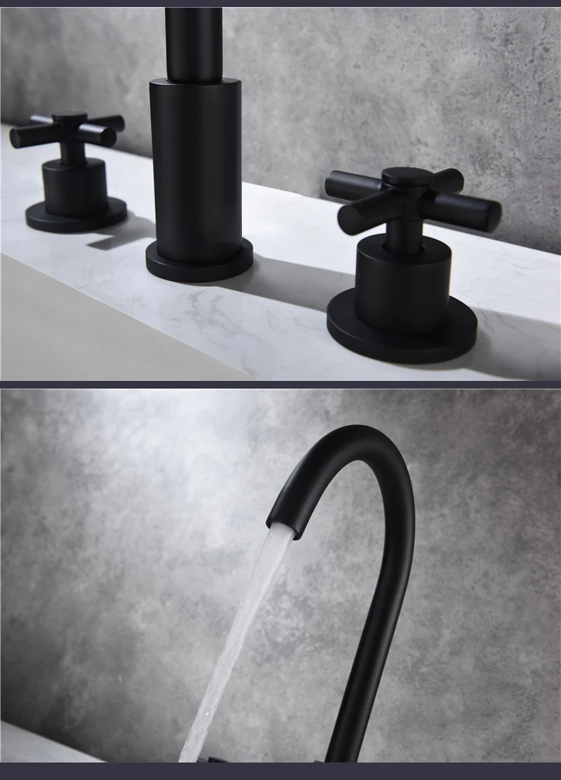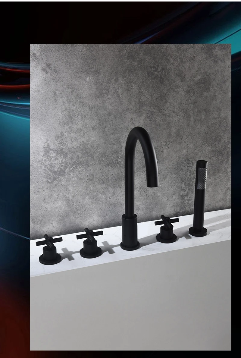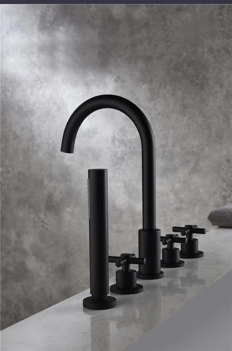Solid Brass Bathroom Bathtub Faucet Shower Matt Black 3 Handle 5 Hole Deck Mounted Hot Cold Mixer Shower Tap Basin Faucet ML8052