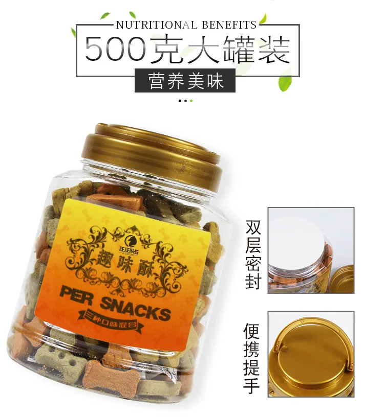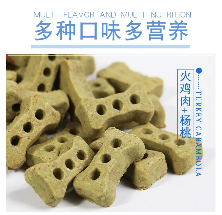 Материал: свежая курица/Говядина и все виды фруктов Вкус: Есть 4 вкуса, как показано ниже: олень и авокадо/як и тыква/Турция и Карамбола/Смешанная упаковка из этих 3 вкусов Вес: 500 г/баррель Оставшийся срок годности: более 6 месяцев Особенность: сохраняет здоровье, обучает награду, чистит зубы и так далее Подходит для собак: маленькие, средние, большие собаки любых пород