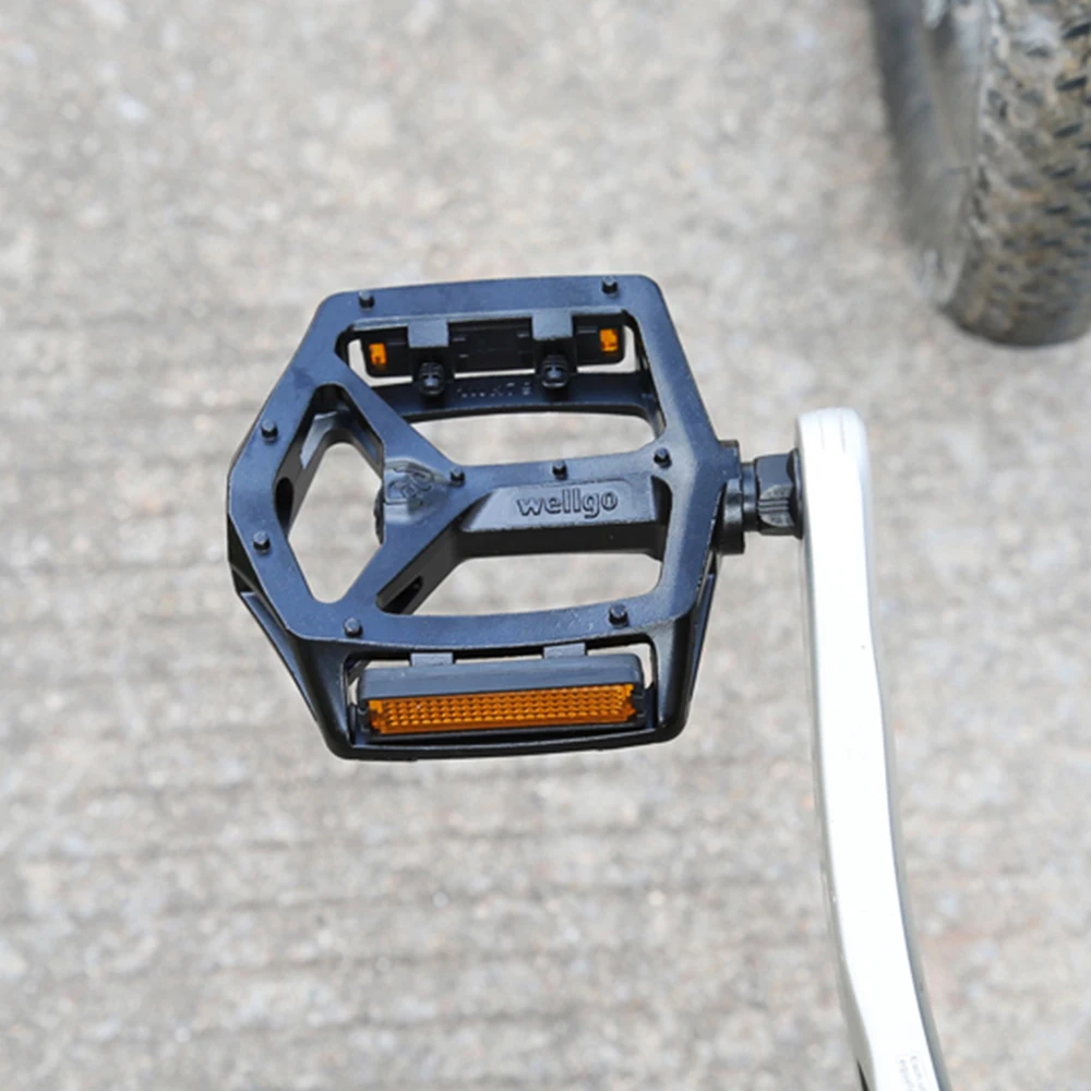 Бренд: Wellgo Модель: B249DU Происхождение: Китай Подшипник: 2DU Материал: алюминий Шпиндель: Cr-Mo Отражатель: Да Использование: горный велосипед Размер: 110*100*20 мм Вес: 390 г/пара
