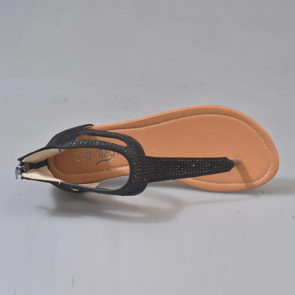 Женские сандалии-гладиаторы на молнии со стразами; Вьетнамки на плоской подошве; Пляжные сандалии; Обувь в богемном стиле