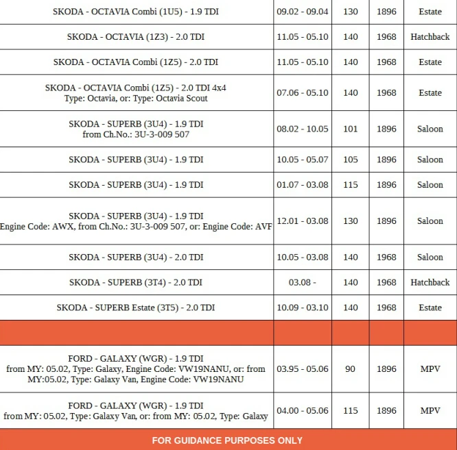 Для дизельных двигателей Volkswagen Group 1,9 и 2,0 TDi 8v