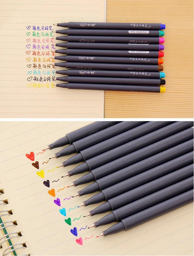 Разные цвета: 10 ярких цветов, без дубликата, 0,38 мм, идеально подходит для рисования линий деталей, живописи, письма, эскиза, маркера, подписи, анимации, графики, дизайна, В комплект входят художники с мелкими чернилами и мелкими замысловатыми узорами.