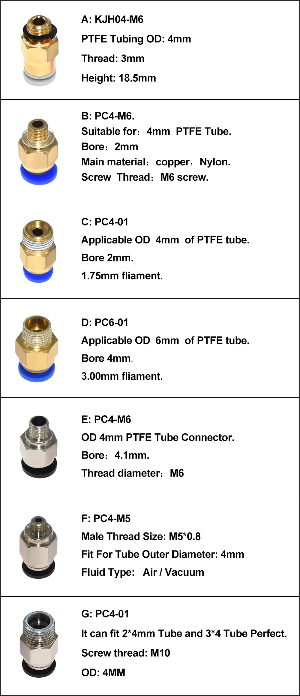 Пневматические Фитинги PC4 M6 для 3D принтера 10 шт./лот запчасти труб 4 мм из ПТФЭ