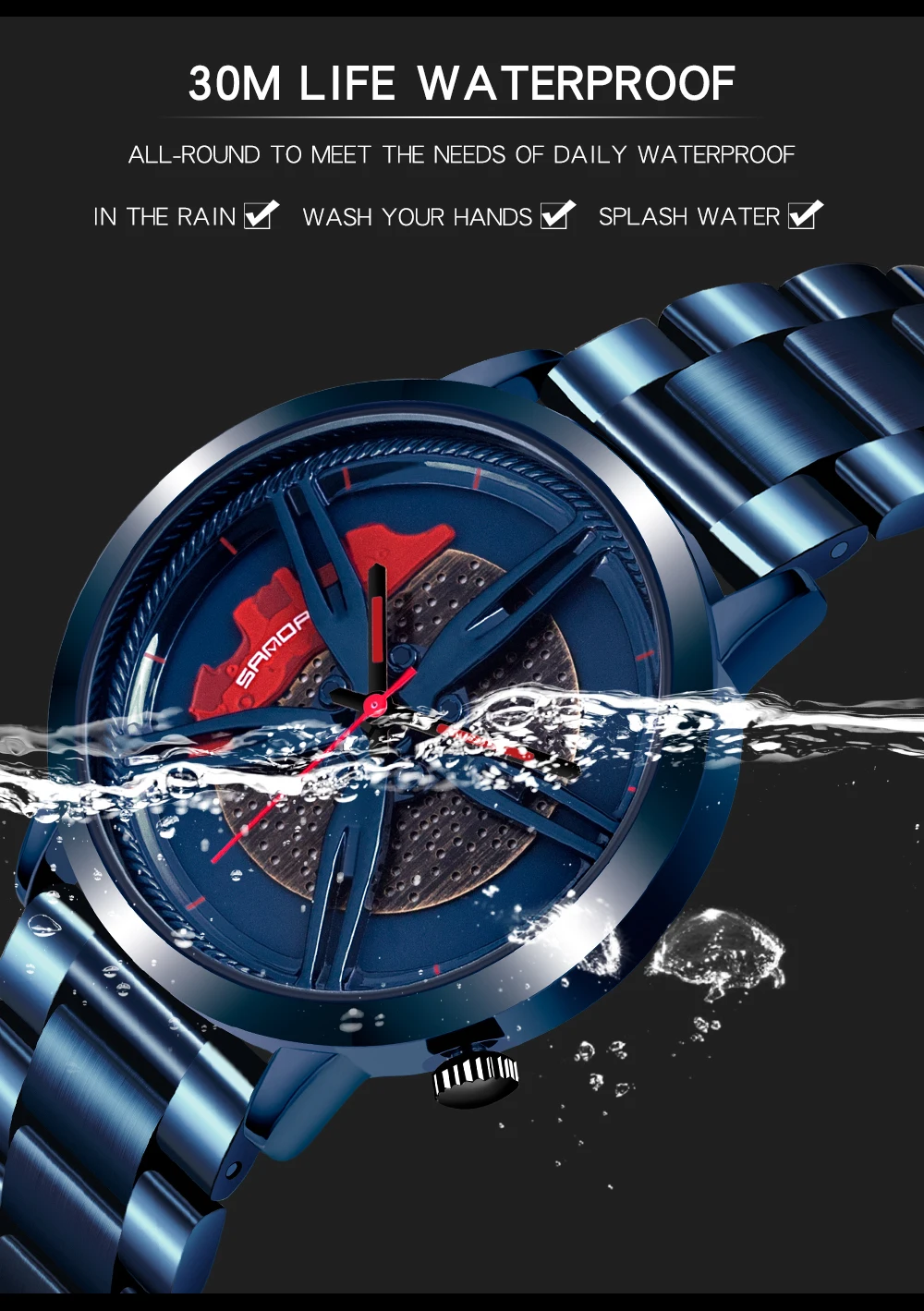 SANDA Топ люксовый бренд, мужские часы, креативные часы серии колес, персонализированный подарок, relogio masculino, кварцевые наручные часы из нержавеющей стали
