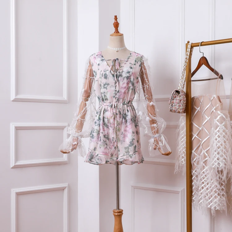 Женский модный комбинезон с перекрестным вырезом и рукавами фонариками тонкие