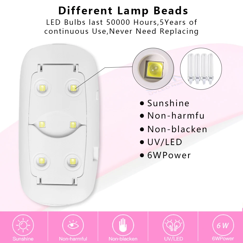 -Лак для ногтей-это вид испаряемого продукта, который не может быть высушен любой лампой для ногтей, поэтому, пожалуйста, не используйте эту лампу для сушки лака для ногтей.