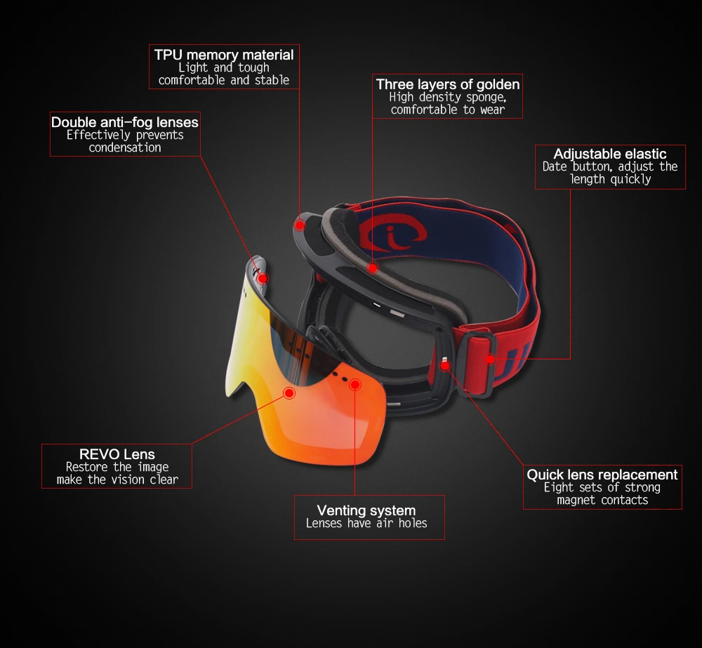 Очки с зеркалом ветра H018 Снежная горная игра лыжные очки для верховой езды Анти
